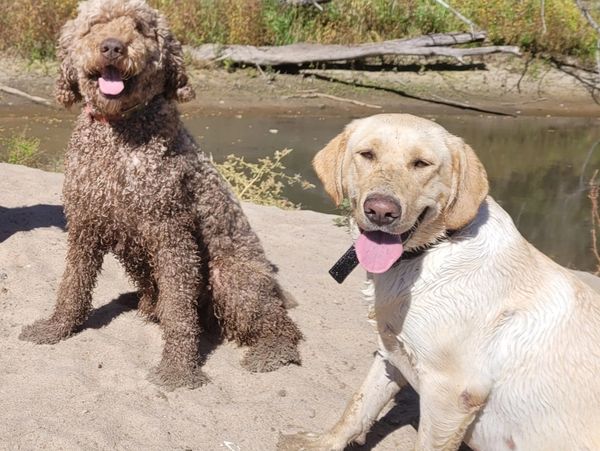 Rue (Dam) is a registered Labrador and weighs 65#.
